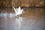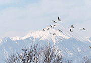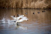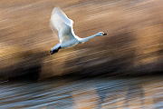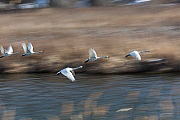 初の流し撮り撮影をしてみましたが、白鳥の頭部分に焦点を合わせカメラを飛ぶ方向へ動かすのは大変難しいです。