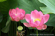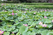 埼玉古代蓮・白蓮・漁山紅蓮があり、ピンクや白の花が朝露に濡れ咲いていました。