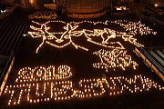 今年のアイスキャンドルは、しか、きつね、リンドウ、八ヶ岳が表されているとのことです。文字は2013 TUSUWAと表示されていました。UTは、多分Tokyo